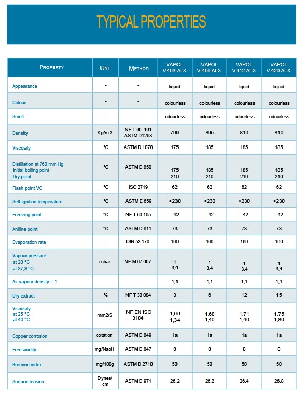 VAPOL® série V 400 ALX are guaranteed chlorine and sulphur-free.